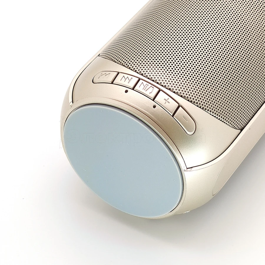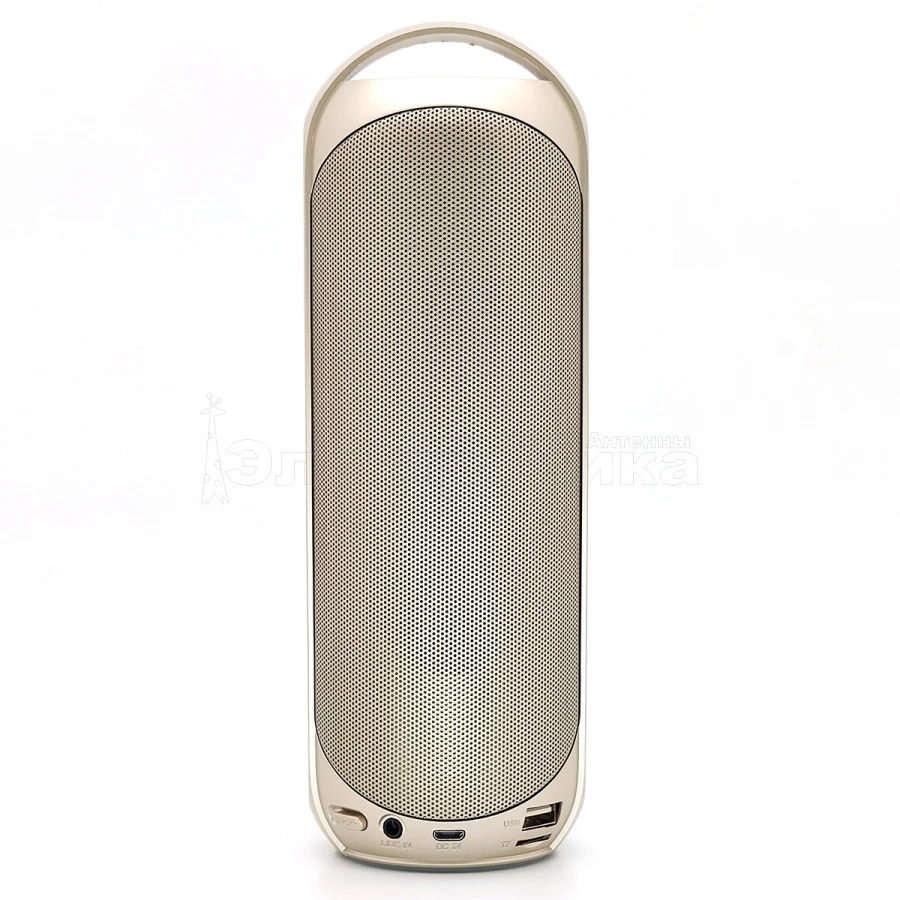 Bluetooth: есть Версия Bluetooth: 5.0 FM: есть USB: есть AUX: есть TF: есть Дисплей: нет Встроенный аккумулятор: 1.2 А Встроенный микрофон: есть Мощность (MAX): 10 Вт Цвет: золото Размер: 205*70*70 мм Материал: пластик Комплектация: кабель ЗУ microUSBУ; кабель AUX