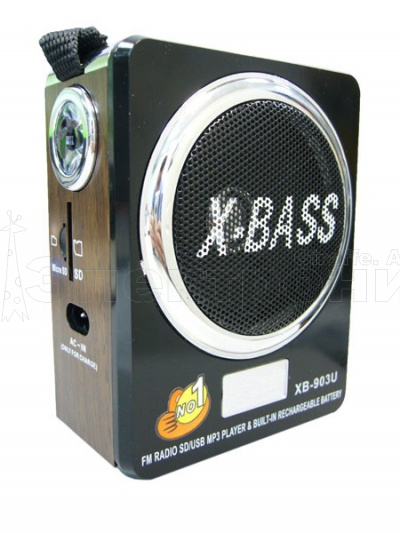 FM: 88-108 MHz Фонарик 1Led Разъёмы: USB, TF(до 32Гб),SD(до 32Гб), AUX, 3.5mm для наушников Питание: аккумулятор встроенный (зарядка 4.5V) / 220V шнур в комплекте / 4*R6 (в комплект не входят) Размер: 13 х 10 х 6 см